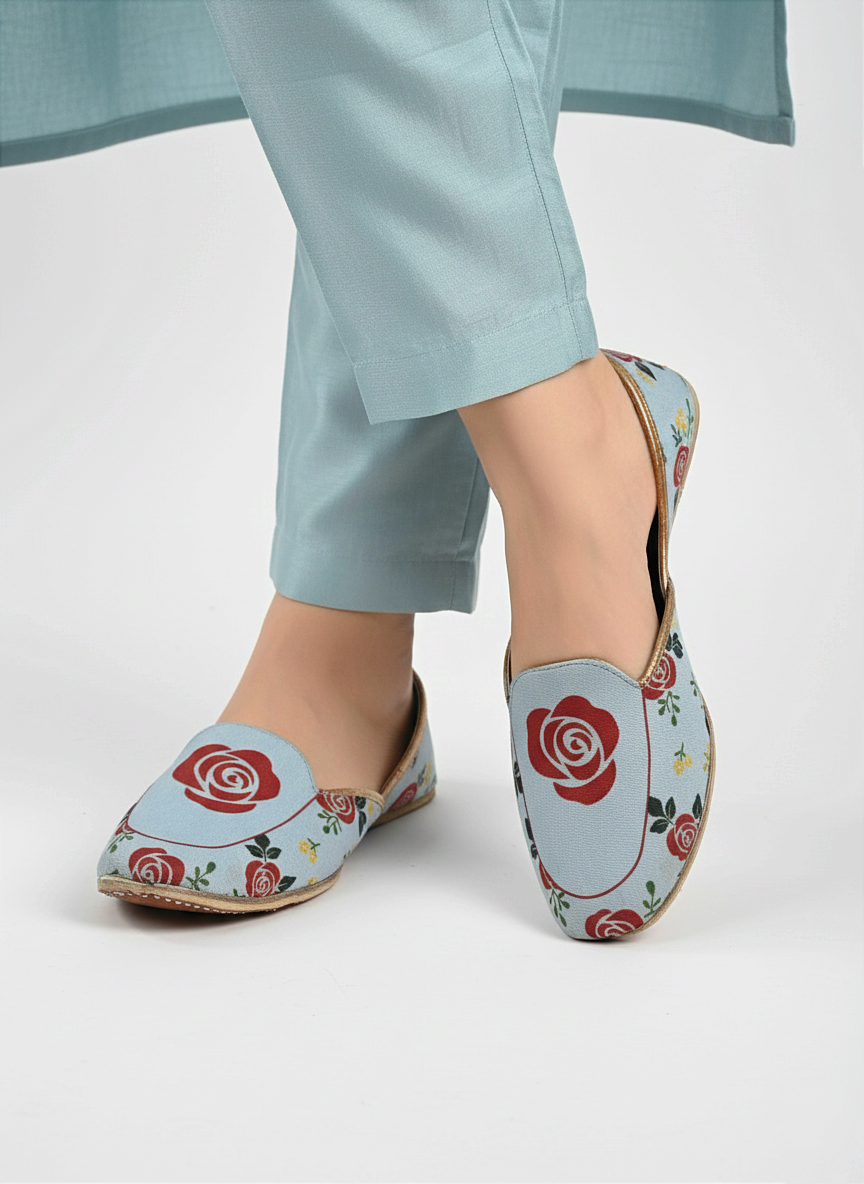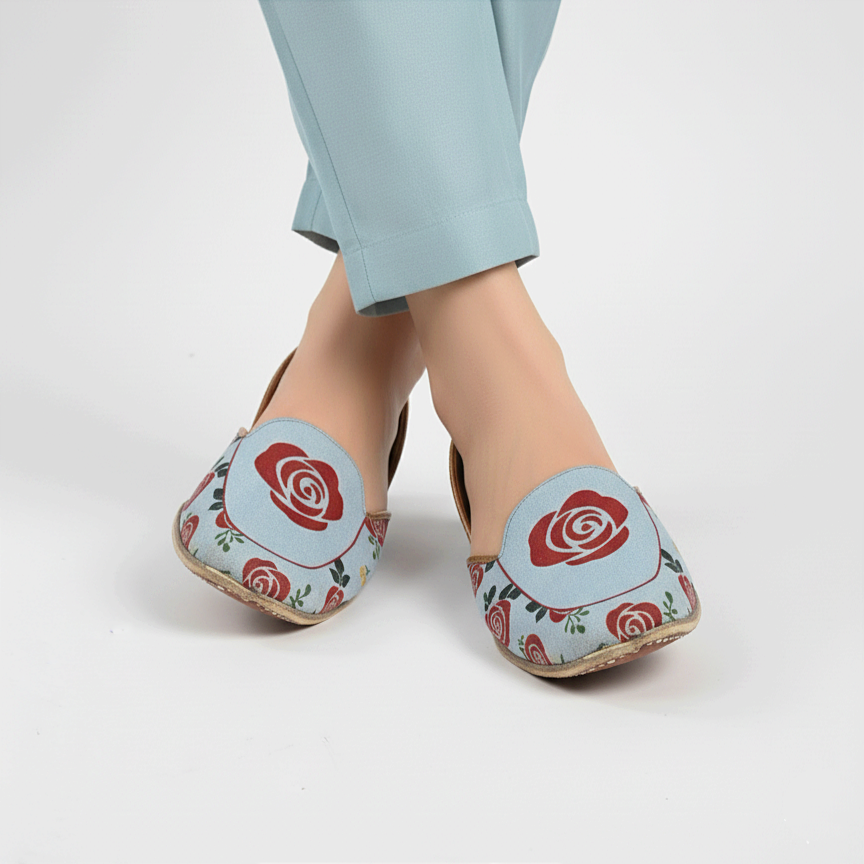 The Rosette Loafers are your new favorite fusion of comfort and classic romance. Featuring a calming light blue print with a stunning central crimson rose, these shoes are designed to delight. They are incredibly soft, easy to wear, and finished with a traditional edge for a timeless look. Slip them on and instantly elevate your mood and your outfit.